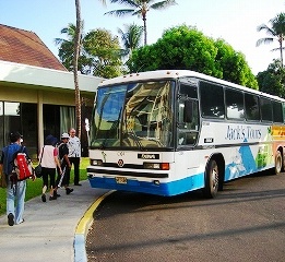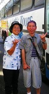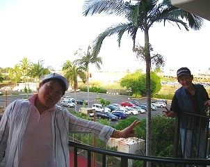 ![]() 部屋のベランダでお隣さん!8:00pmバスに乗り込んで島巡り・・行くぞー!運転手デイビスさん |