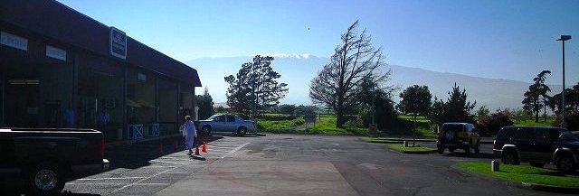 ![]() ショップの裏に出てみると、マウナケア山が眩しく見える。 |