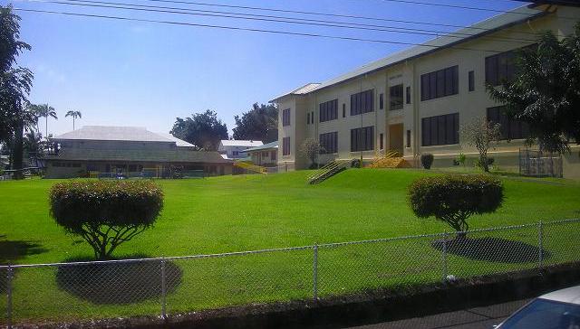 ![]() 小学校の校庭は全て芝の運動場が広がる |