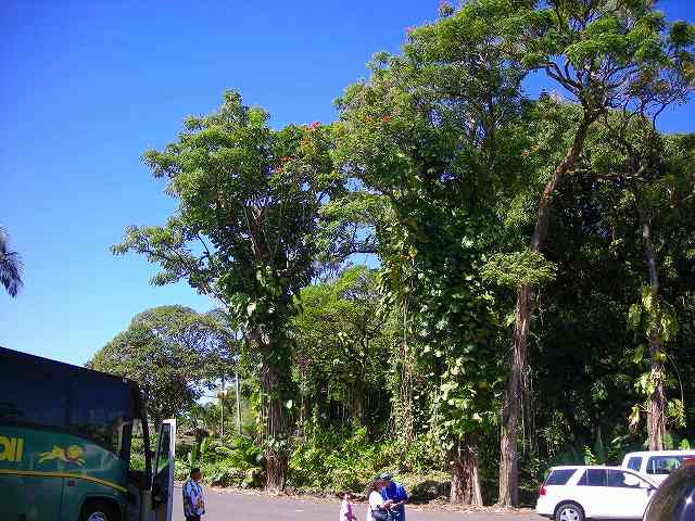 ![]() 10:40〜11:00 ポトスが大木に絡む熱帯林が、虹の滝《Rainbow Falls》の入り口 |