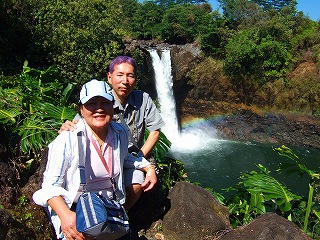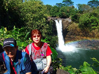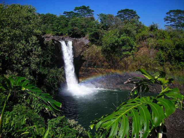 ![]() 名前の通り虹が架かっていた《レインボー滝》 パンの木が南国 |