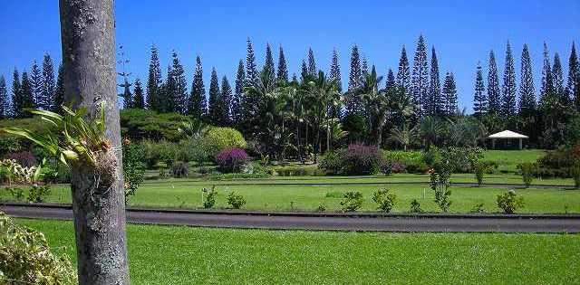 ![]() 11:45am〜12:30pm ナニ・マウ・ガーデン駐車場から、左端になだらかなマウナラア山、右端にマウナケア山4025m |