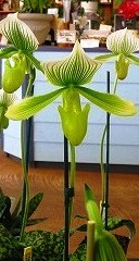 ![]() コーヒーの甘い香りがする(オンシジュウムの種類) 紅色の蘭は「レディスリッパー」 爽やかな緑ジェントルマンスリッパ |