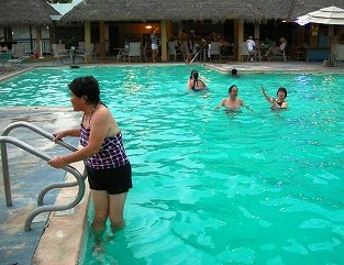![]() 華麗(加齢)に泳ぐYasukoさん 泳ぎの苦手なTakakoさんはもっぱらジャグジー |