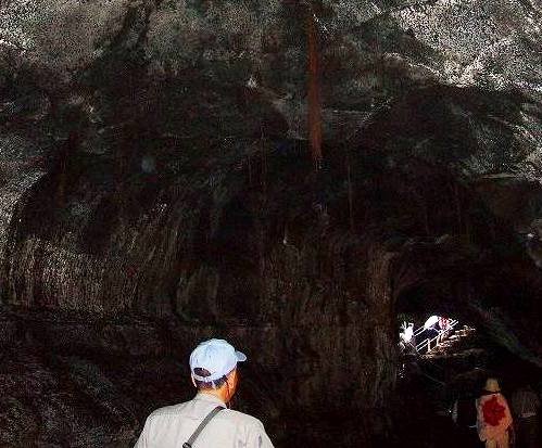 ![]() サーストン溶岩トンネルの入り口です。溶岩が流れた溶岩トンネル:洞窟探検か? |