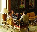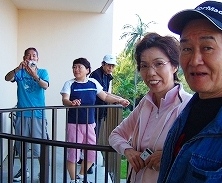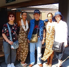 ![]() 足元のテニスコーに未練残しボーっと!女性陣はボーっと談笑!そこへ迎えのドライバーさんが・・・アロハ〜! |