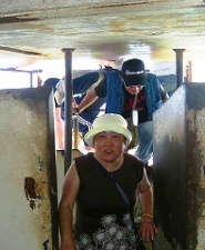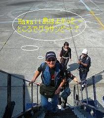![]() 古い言葉でタラップ駆け上がる ハワイ諸島(島の名前は疑問)を眼下に Yasukoさん撮影 |