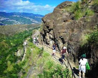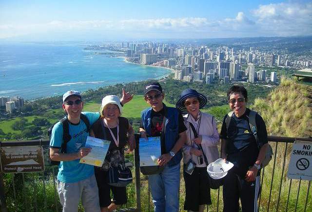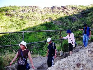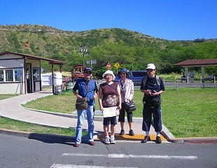 ![]() ホテルで呼んでもらった「バンのタクシー」に5人 ダイヤモンドHEADまで$13.5+チップ=$15に、少ないと渋い顔!$20渡したらニッコニコだったわ。 3:00 入 場 料 :1人1ドル いよいよダイアモンドヘッド登山 スタートです |