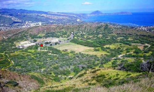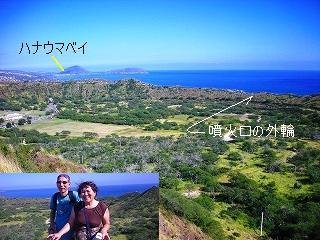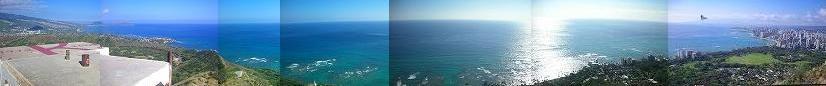 ![]() 日本人が嫁さんのアメリカ人に説明と写真撮ってもらう。 3:50pm かつての海と空からの敵襲に備えたオアフ島沿岸防衛のための軍事エリアからワイキキを望む |