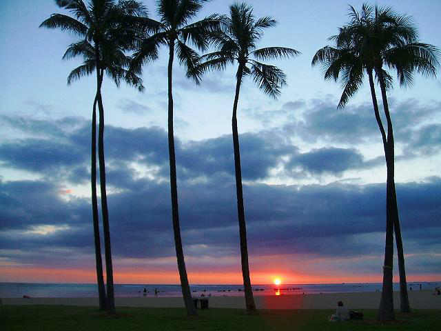![]() アラモアナビーチ (買い物してる間に一人でやってきた) ロマンチックなハワイのサンセット 6:30pmごろ |