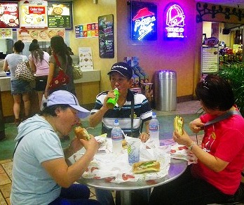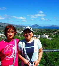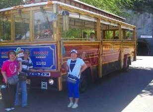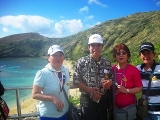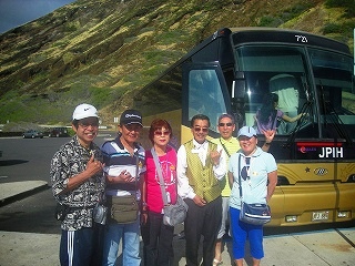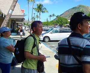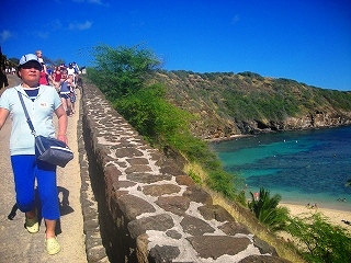 DFSギャラリア・ワイキキに戻る12:35pmと*ハナウマベイ(ブルーライン)が反対側を出発(次は1時間後の1:30) AMの市内観光>昼食はDFS近くの で済ませ、7:15pmナイトツアーまでハナウマベイに出かける。微熱あるTakakoさんは1人ホテルで休息、心配の旦那さん1人ホテルに戻る事に!(逆方角に行きかけたので、慌てて静止する) |
