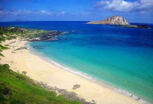 ![]() 全米でもっとも美しいとの評価を受けたカネオヘ湾《カイルアビーチ》 きめの細かい真っ白な砂浜が広がって、ウインドサーフィンのポイントとしても有名 |