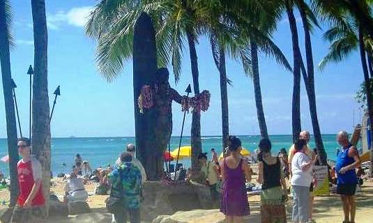 ![]() 《デューク・カハナモク像》サーフィンの神様 1912年に水泳でオリンピック選手として、ハワイに初の金メダル。生誕100年を記念してつくられた。 |