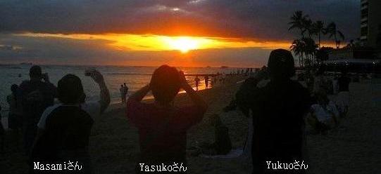 ホテルは着替えたら直ぐ出発 5:30〜5:45 ハワイに来てワイキキビーチの写真がな〜い!すわ大変! ![]() 思い思いの感動を焼付け (夕食はABC&ベーカリーで買い、歩きながらと、ワイキキでおにぎりを夕焼け眺め食べる) |