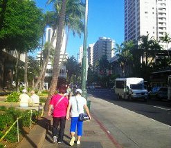 ![]() DFS行く途中、ロイヤルハワイアンHのフラダンスに足を止める 6:45 腰ふりふり集合場所へ |
