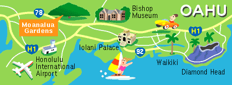 DFSギャラリア・ワイキキ → ハナウマ湾展望台(約10分) → ハロナ潮吹き岩(約5分) →ヌアヌ・パリ(約10分) → モアナルア・ガーデン(約10分) → カメハメハ大王像 → ダウンタウン → DFSギャラリア・ワイキキ |