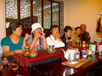 ![]() 中国茶聞茶体験*チャイナドレスさんの話術は軽快明朗でつい・買っちやいました。Tシャツがマッチング〜! |