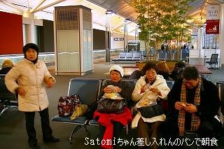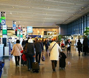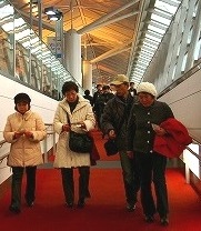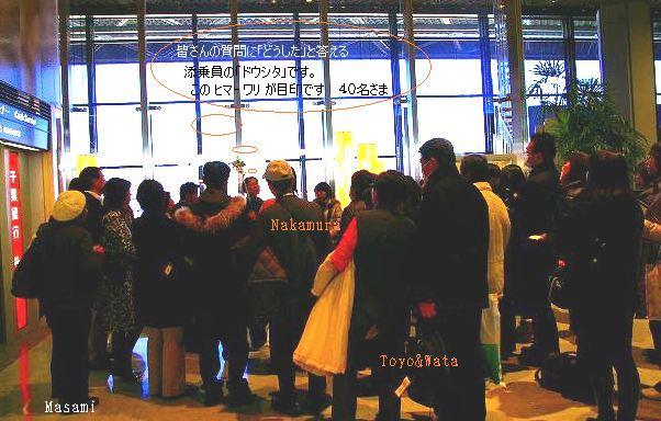 ![]() 成田空港もお正月気分で、樽酒が振舞われていた。荷物を持って集合場所に移動。 |