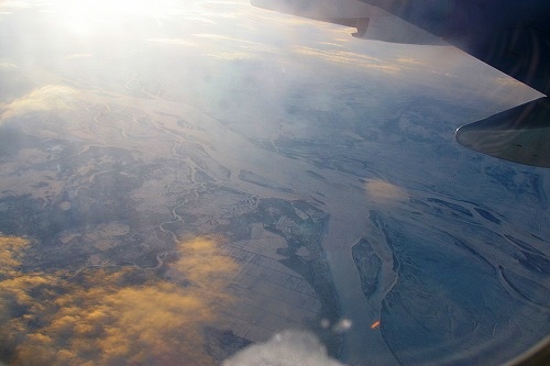 ![]() シベリア上空を飛んで>>> 川も陸地も全て凍りついています |