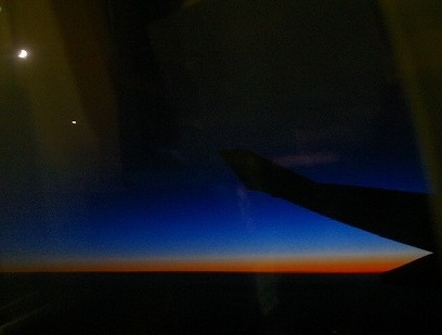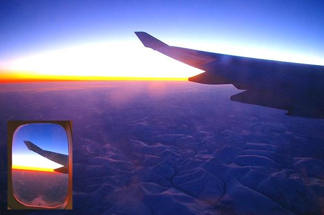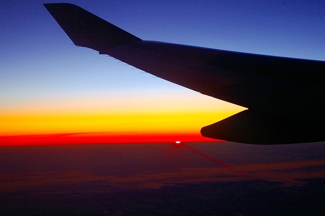![]() 西に飛んでいるので、なかなか沈まないサンセット 普段では見えない景色です。 |