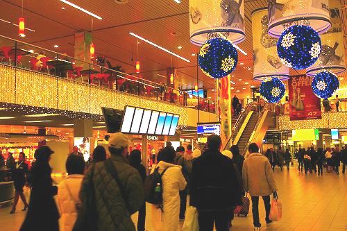 ![]() 16:10着 アムステルダム空港内を、ひまわりについてぞろぞろと歩く。 イルミネーションがきれい |