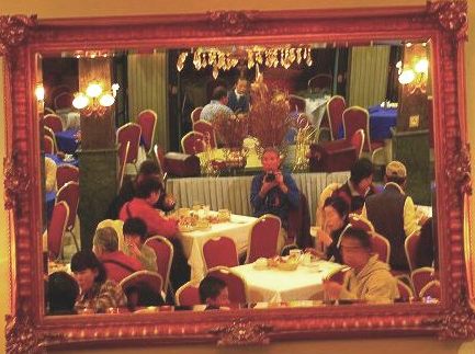 ![]() 皆の食事風景を、ガラス越しに眺めてカメラを切る。パンは貰って来ました。 |