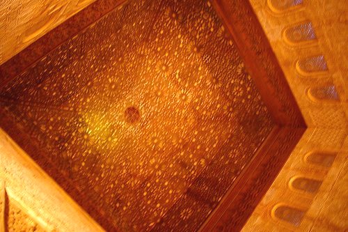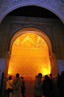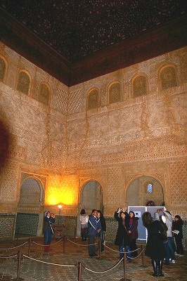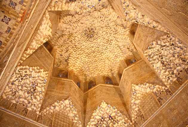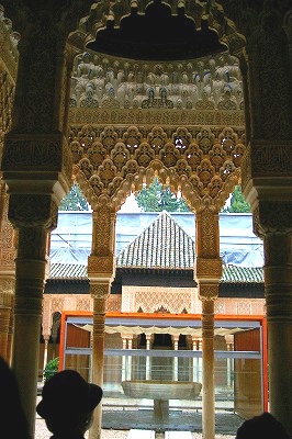 ![]() 獅子のパティオを囲む回廊の左手にある。天井のモカラベ(鍾乳石飾り) Nakamuraさん撮影 |