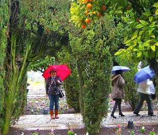 ![]() あいにくの雨で庭園は早足で見物! |