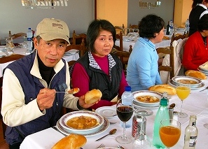 ![]() ランチのレストラン・・チキンで食べれませーん! 夫婦ともパスか〜!でもスープとパンは0Kかも |