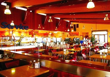 ![]() 大きなレストランです・・ここは自分で飲み物は選んでレジで計算。濃くないコーヒーが頼めません? |