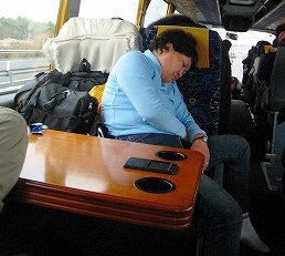 ![]() 嫁さんは元気でスースー!私はふらふらでハーハー!(Satomiちゃんに3種類のエアー枕を借りてます) |