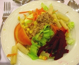 ![]() ![]() CAVA(スペインのスパークリングワイン)を飲んで、サラダはオリーブ油がふんだんに・・・デザートはフルーツポンチ |