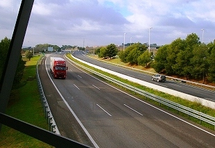 ![]() 水道橋から淡い色彩の木々を超えて高速道路を眺める |