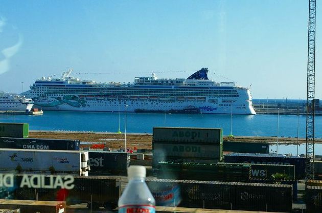 ![]() 有名な豪華客船・・方々の港に停泊するそうです。(バスの中から) |