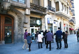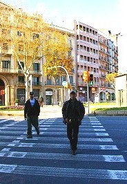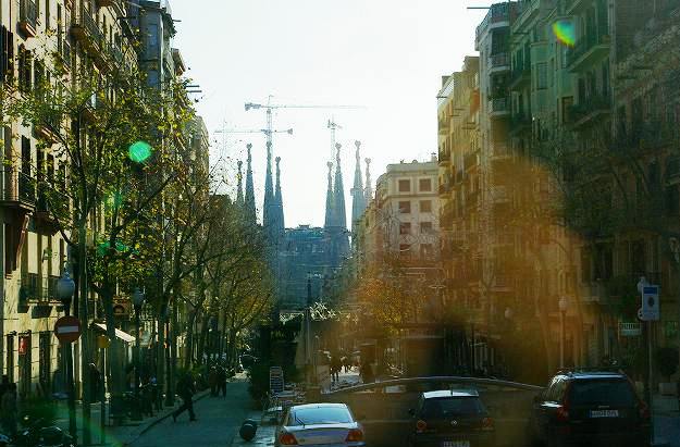 ![]() 建物の間から見えた『聖家族教会』に歓声が沸く!ついに来たかバルセロナ |