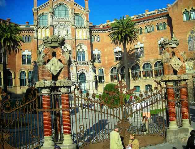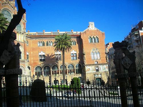 ![]() ムデハル様式の豪華な病院は1902年〜1930年に建築。敷地内には複数の巨大な建築物がある。 設計はカタルーニャ音楽堂と同じく建築家リュイス・ドメネク・イ・モンタネールが手がける。見学出来ないのが残念。 |
