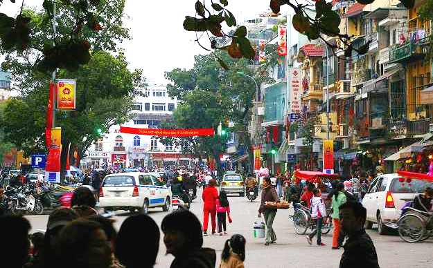 ![]() 人形劇前*左方にホアンキエム湖(花祭りでにぎわっています) |