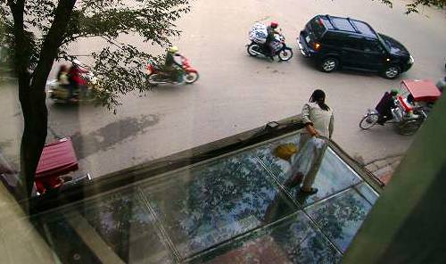 ![]() 朝眼を覚まし窓の下を覗くと、ガラス張りの天井をほうきで掃除していたのに驚いた。 |