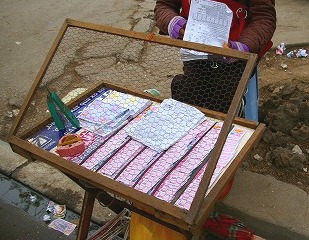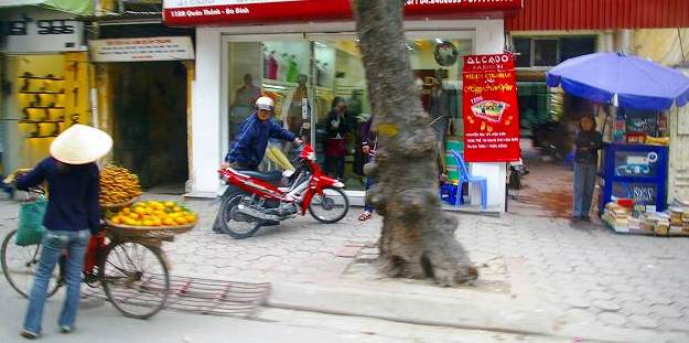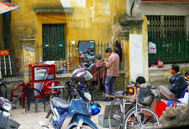 ![]() 歩道で色々な商売が繰り広げられる・・・髪をバリカンでカット中 |