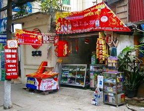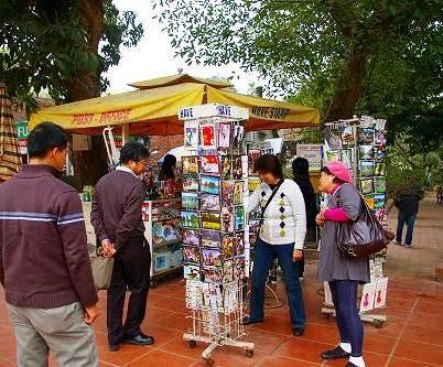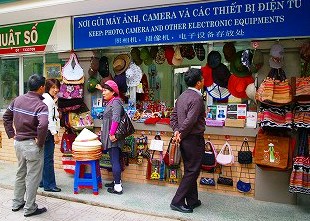 ![]() この鉄兜は本物?ベトナムのお土産が並んでいます。 |