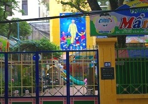 ![]() 幼稚園の壁にはホ・チミンさんと子供 |