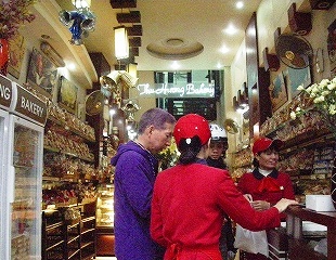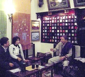 ![]() シルクの土産屋さんで買い物しない人は休憩、お茶を飲みながら時間まで・・ |