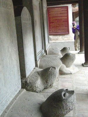 ![]() 科挙に受かった人の名前が刻まれた石板が並ぶ 科挙(かきょ):中国で古くから行われた官吏登用のための資格試験。 |