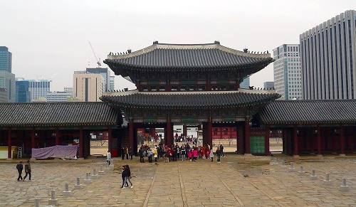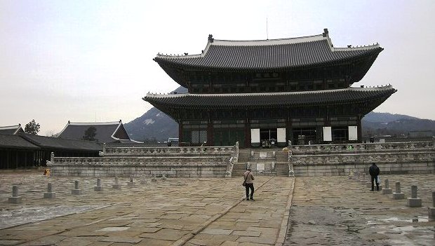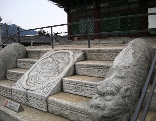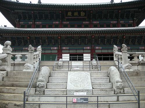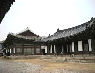 ![]() 本殿・さすが〜!韓ドラの時代劇のセットに使われてるのとそっくりだわ〜! 1895年、明成皇后閔妃(びんひ)が日本人暴徒に殺害されて以後、500年の王宮としての運命を終えた。 |