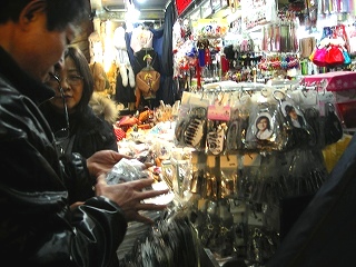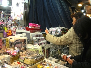 ![]() 2軒目のグッズ店でも2人は真剣? |