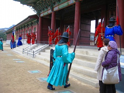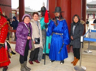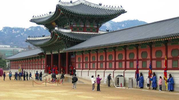 ![]() 景福宮(キョンボックン) 本殿は工事中でした*何かと思ったら、お墓が並んでいます。 朝鮮、李朝(りちょう)の正宮。別称を北闕(ほくけつ)ともいう。1395年ソウルに創建された。 |