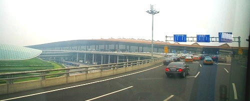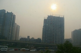 ![]() 7:40の出発 北京の空はスモッグ?で曇っている |