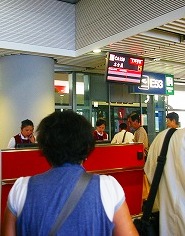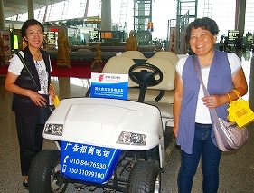 ![]() 広い空港内を走る車が、疲れた3人にどうぞ乗ってくださいと止まる。 乗り込んで一番遠いゲートNOを知らせたらOKと言い「一人2元」だと、すぐ降りました。 |
