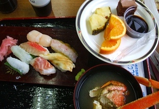 ![]() 昼食:最初1人前を食べてからスタートです 三大かに汁の食べ放題はグ〜! |