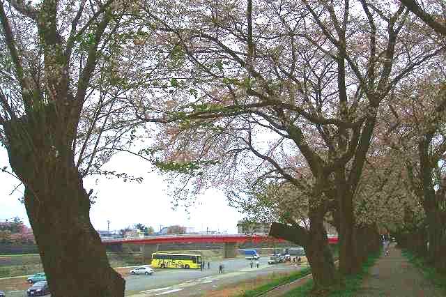 ![]() 臨時の河川敷が駐車場で・・桜がよく見える・・ |